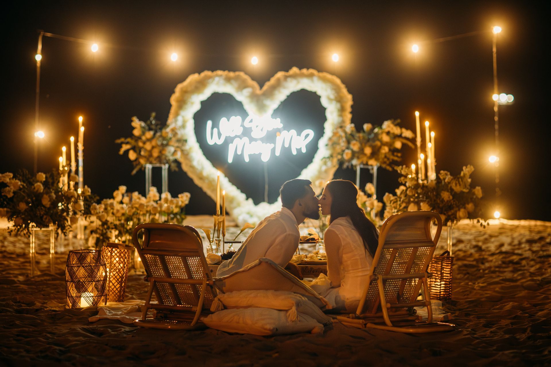 - Luxury picnic proposals styled with candles, florals, and cozy details.